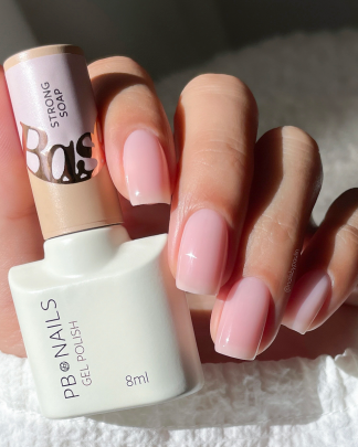 Strong Soap Base to nasza odpowiedź na trend Soap Nails, który pokochały fanki minimalizmu na paznokciach. Ma delikatny, mleczno-brzoskwiniowy odcień i kryje na poziomie 80-90%. Jest średnio gęsta i elastyczna – świetnie współpracuje z naturalną płytką. Baza wolna jest od HEMA i TPO.