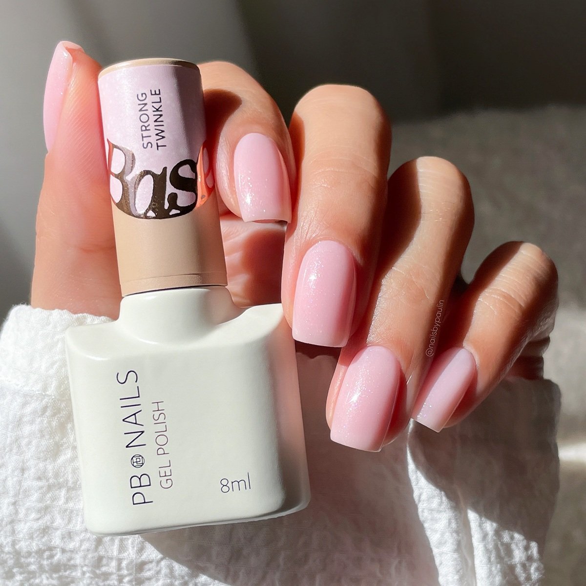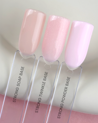 Strong Twinkle Base to jasnoróżowa baza z subtelnym, opalizującym brokatem. Ma średnio gęstą konsystencję, która ułatwia równomierne rozłożenie produktu na paznokciu. Jest elastyczna i świetnie współpracuje z naturalną płytką. Poziom krycia Strong Twinkle Base to 90%. Baza wolna jest od HEMA i TPO.