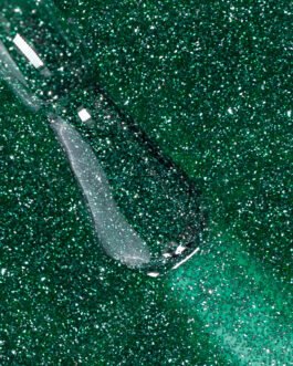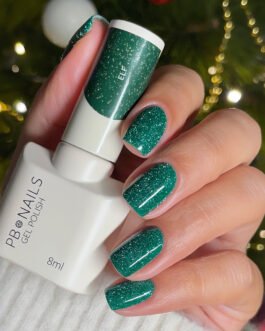 Elf to lakier hybrydowy w odcieniu głębokiej zieleni, w którym zatopione są błyszczące drobinki. Idealnie sprawdzi się do świątecznych zdobień, ale solo w stylizacji również zrobi ogromne wrażenie.
