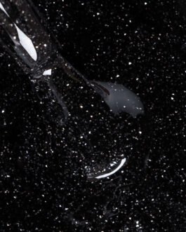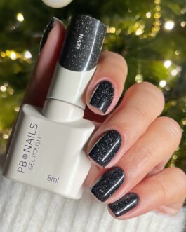 Lakier hybrydowy Kevin to spełnienie marzeń wszystkich fanek czarnych paznokci, które w świąteczno-sylwestrowym okresie chciałyby trochę zaszaleć. Lakier skrywa w sobie błyszczące drobinki, które w sztucznym świetle wyglądają zjawiskowo.
