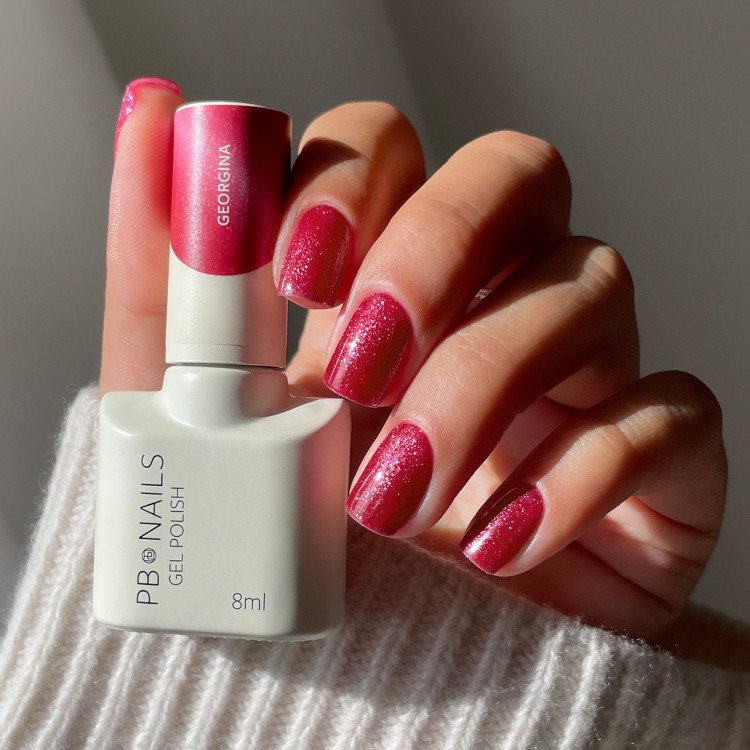 Lakier hybrydowy Georgina to malinowy róż pełen energii i kobiecego wdzięku.