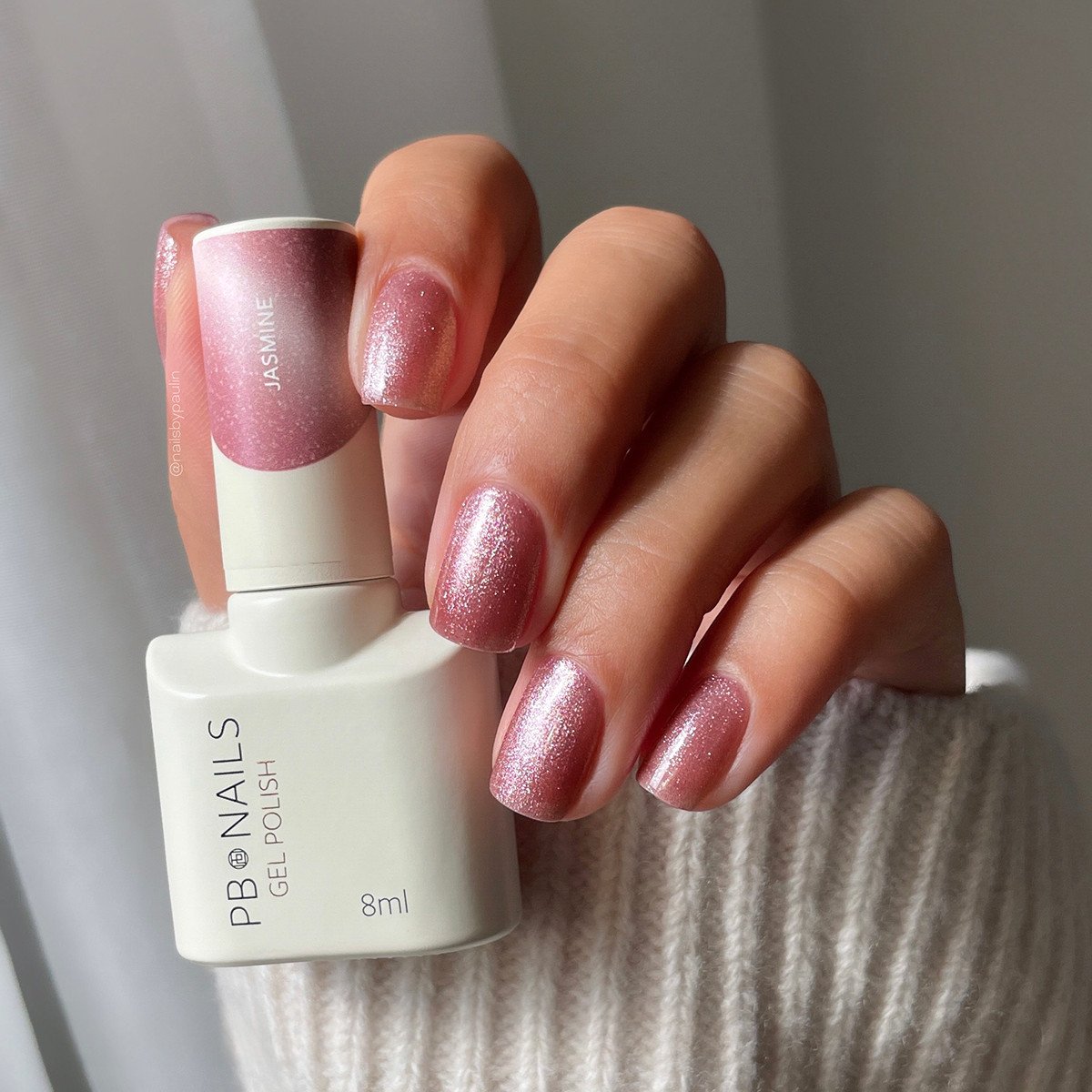 Lakier hybrydowy Jasmine to romantyczny różowo–liliowy odcień z metalicznym blaskiem.