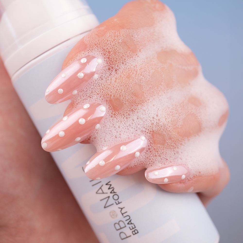 Beauty Foam to lekka pianka pielęgnująca, która skutecznie oczyszcza skórę i płytkę paznokcia po lub w trakcie zabiegu. Pozostawia skórę jedwabiście miękką – niczym po użyciu olejku – ale bez tłustego filmu czy połysku. Dzięki temu idealnie sprawdza się jako ostatni krok przed wykonaniem zdjęć lub nakręceniem reelsa – zapewnia perfekcyjny efekt i estetyczne wykończenie stylizacji.