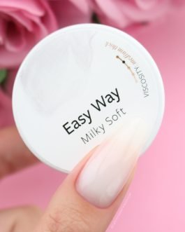 Easy Way Milky Soft Gel stosuje się jako warstwę budującą w metodzie żelowej. Mlecznobiała barwa ma ok 80% krycia i nadaje paznokciom naturalny wygląd. Jego konsystencja jest średniogęsta i wykazuje właściwości samopoziomujące. Posiada również właściwość zwaną tiksotropia, czyli potocznie „pamięć kształtu”. Daje to większą kontrolę podczas pracy z masą żelową, ponieważ pozostaje ona dłużej we wcześniej nadanym kształcie. Masa nakładana na pytkę jest trwała oraz odporna na uszkodzenia mechaniczne, za co odpowiedzialne są włókna jedwabiu dodane do produktu i wzmacniające go. Podczas dłuższej pracy z żelem, nie należy się obawiać, że będzie spływał na skórki. Żel Easy Way Milky Soft również się nie rozpręża.